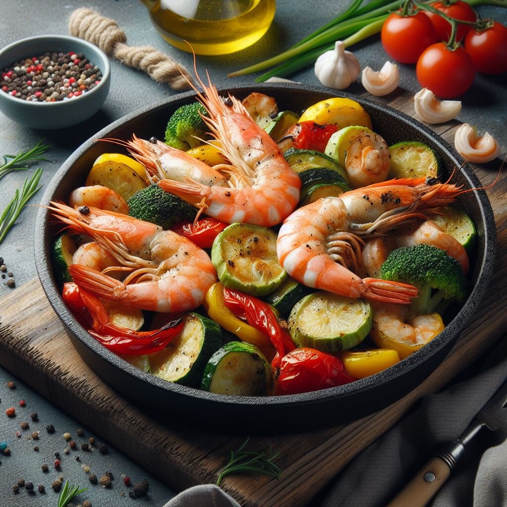 Ингредиенты: • 500 г креветок • Ассорти овощей (морковь, цукини, перцы, кабачок, лук) • 3 ст. ложки оливкового масла • 3 зубчика чеснока • 1 ч. ложка сушеных трав • Соль и перец • Лимон и зелень для подачи Инструкции: 1) Приготовьте овощи, порежьте их и смешайте с чесноком, маслом, травами, солью и перцем. 2) Выпекайте овощи в разогретой духовке 20-25 минут. 3) В то время как овощи готовятся, запекайте креветки в духовке 5-7 минут. 4) Подавайте овощи с креветками, посыпав зеленью и соком лимона. Приятного аппетита! Понравился рецепт? Оставляй реакцию и пересылай друзьям! И не забудь подписаться на наше сообщество.