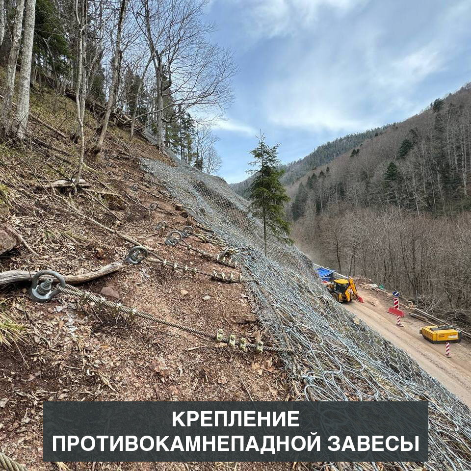 🔗 Противокамнепадная завеса выполняется из высокопрочной стальной сети 2Д-Гео и при необходимости усиливается стальной кольчужной сетью. Как правило, конструкция крепится лишь к несущему канату, пущенному по верхнему краю сетчатого полотна. 📍 Несущий канат закрепляется на рельефе с помощью грунтовых анкеров GEOIZOL-MP. Для упрощения производства работ анкерную группу выполняют на относительно ровной поверхности на вершине камнепадоопасного склона. Связь между канатом и анкерами обеспечивается с помощью канатных оттяжек. ✅ Завеса препятствует свободному падению камней и обеспечивает надежную защиту от камнепадов. При этом использование стальных сеток не только оставляет рельеф неизменным, но и позволяет сохранить деревья, растущие на склоне. 👉 Подробнее о противокамнепадной защите читайте на нашем сайте: https://geoizolproject.ru/proektirovanie-i-izyskanija/inzhenernaja-zashhita-territorij/zashhita-ot-kamnepadov-2/