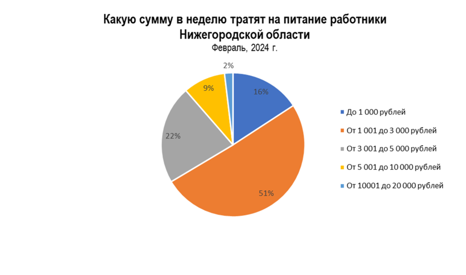 51% работников из Нижегородской области тратит на обеды в среднем за неделю от 1 тыс. до 3 тыс. руб. 16% участников опроса hh.ru посещают кафе или заказывают еду на работу. Еще 35% респондентов предпочитают брать обед из дома, 49% — питаются в рабочее время либо домашней едой, либо идут на бизнес-ланч. На обед 75% нижегородцев выбирают блюда из мяса/ рыбы/ птицы с гарниром, 66% — салаты, а 56% — супы. В список других любимых блюд местных работников вошли: Аналитики выявили связь между тем, что едят опрошенные и их профессиям. Как выяснилось, мясо, рыбу и птицу с гарниром чаще других потреблят управленцы — 81%, IT-специалисты — 79% и административный персонал — 78%. Салат больше нравятся работникам науки и образования — 77%, индустрии искусства, развлечений, массмедиа — 76%, а также финансисты и бухгалтеры. Супы в целом нижегородские работники едят реже. Им обедают айтишники — 63% и специалисты производства и сервисного обслуживания — 63%, — говорится в сообщении. Вторые по популярности