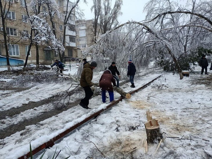 Самоуправство поневоле: жителям Красного Сулина пришлось самим спиливать заледеневшие деревья и ветки