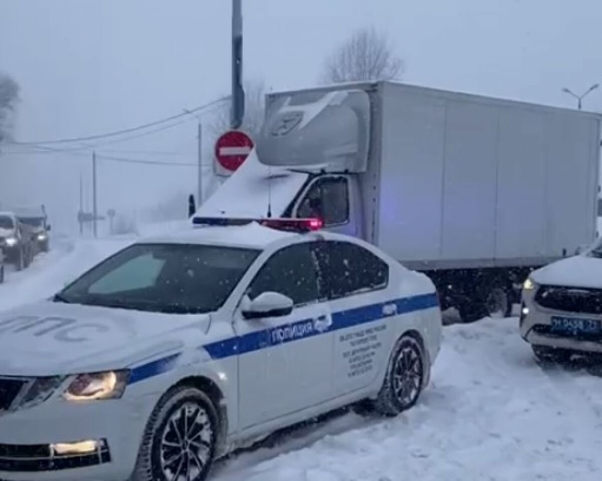 В Тульской области сотрудники ГИБДД помогают автомобилистам во время метели