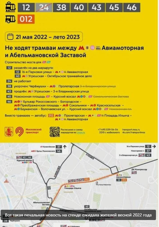 Пару лет назад когда было закрыто движение трамваев от Абельмановской улицы до м. Авиамоторная,