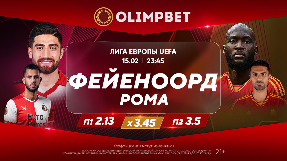 15 февраля стартует первый раунд плей-офф Лиги Европы. Аналитики Olimpbet дали расклады на самые интересные матчи. «Фейеноорд» (Нидерланды) – «Рома» (Италия). 15 февраля, 23:45 (время Астаны) Пути этих клубов пересекаются третий год подряд. В сезоне-2021/22 «Фейеноорд» и «Рома» встретились в финале первого в истории розыгрыша Лиги конференций, трофей тогда завоевали итальянцы. Затем они сражались между собой за путевку в полуфинал уже Лиги Европы, и тот спор снова остался за «волками». Сейчас же командам из Роттердама и Рима предстоит двухматчевое сражение на дальних подступах к решающей стадии плей-офф, в 1/16-й финала ЛЕ, которая еще называется стыковым раундом. В нем принимают участие клубы, занявшие третьи места в группах Лиги чемпионов, и вторые – в квартетах Лиги Европы. В этой паре «Фейеноорд» начал международный сезон с главного евротурнира, тогда как «Рома» изначально играла в ЛЕ. В рейтинге команд, выступающих в плей-офф Лиги Европы-2023/24, римляне идут шестыми, кэф на их по