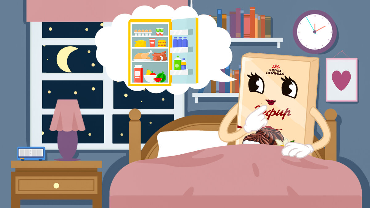 Зефирка этой ночью плохо спала. Она села на диету и приняла мужественное решение не ужинать после 18:00. Однако вместе с килограммами куда-то пропал сон: по ночам она то и дело просыпалась, а ноги сами вели ее к холодильнику. Если же Зефирке удавалось уснуть, ей снились колбаски, печеньки и другие продукты — казалось, она чувствует их вкус, как наяву. Зефирка поняла, что так продолжаться не может, и записалась на консультацию к диетологу, чтобы наладить режим питания и восстановить сон. Почему нельзя переедать на ночь? Выслушав историю Зефирки, диетолог заявила, что мнение современных специалистов о вреде позднего ужина давно изменилось. Но и переедать на ночь они не советуют — это чревато последствиями. Узнав о последствиях переедания, Зефирка испугалась. Информация, которой поделилась с ней доктор, мотивировала отказаться от ночных походов к холодильнику сильнее диеты. Всё-таки здоровье важнее цифры на весах. Почему нельзя засыпать голодным? Что нельзя есть на ночь? Зефирка совсем за