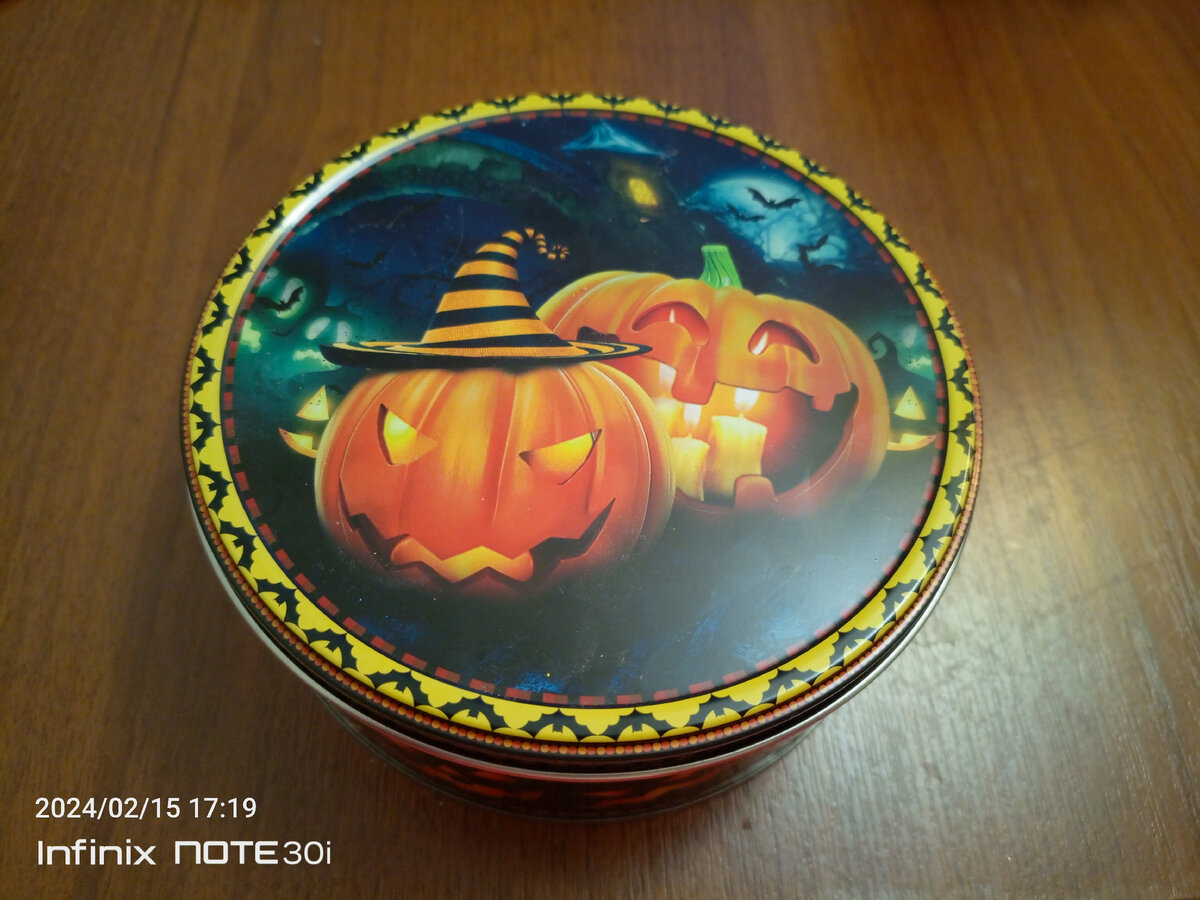 Всем привет! Как- то одно время муж стал мне поговаривать, что ему нравится тематика Хеллоуин 🎃, что хотел бы побывать на такой вечеринке. Задумка в общем неплохая. Как раз на День его рождения я устрою ему этот праздник. Правда обойдётся в копеечку. Так как все атрибуты дорогие. Но, радость еще никто не отменял. Сначала я все атрибуты искала и заказывала на Вайлдберриз, а потом как- то зашла в Фикс Прайс. Там чего только нету. Я купила гирлянды в виде паучков, колпачки на голову, тарелочки, стаканчики и много другое. Также заказала мужу футболку с принтом, скатерть и надувные шарики 🎈 и много чего еще нужно. Благо у него день рождения в июле, время ещё есть! Еще я увидела круглые железные баночки с тематикой Хеллоуина🎃 Рисунки были разные. Я выбрала две коробочки. В них печенье. Печенье песочное. И даже написано на баночке- страшилки. Я так и подумала, что внутри будут фигурки. Эти баночки стоят уже у меня два месяца. Решила я одну попробовать, снять пробу, вдруг какая-нибудь фигня