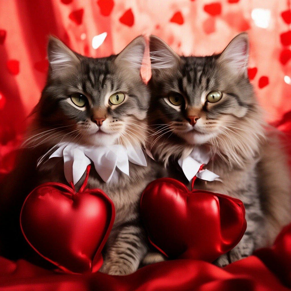 Веселое празднование дня святого Валентина). 7 миллиардов котиков). Даешь каждому по котику!)