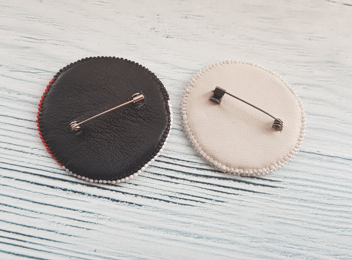 Сегодня я покажу как можно оформить вышивку в брошь или значок. О том, что такое броши и значки я писала ранее здесь: Изнанки моих брошей выглядят так: Так что этот способ подойдёт не только для оформления изнанки брошей и значков, вышитых крестиком, но и для изделий в других техниках. Рассказываю как оформить изнанку вышивки в брошь Для оформления нам понадобятся: Первым делом на материале будущей изнанки намечаем контур: если ваше изделие асимметрично, то особенно важно это делать с внутренней стороны изнанки: Вырезаем изнанку: На лицевой стороне изнанки примеряем положение будущей застёжки: Важно правильно разместить застёжку. Если изделие тяжёлое, то замок стоит разместит повыше, чтобы брошь не "клевала" вперёд. То же справедливо, если изделие крупное (как, например, брошь "Чёрный лебедь" в галерее выше). Далее аккуратно по намеченному контуру канцелярским ножом вырезаем окошки и примеряем к ним застёжку изнутри: Если всё сошлось, отрезаем лишнее. Ватной палочкой убираем следы руч