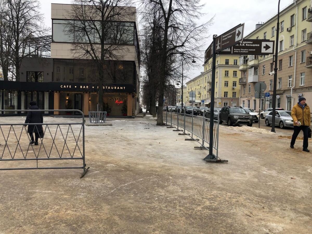 Около въезда на Советскую площадь в Воронеже установили ограждения от автомобилей