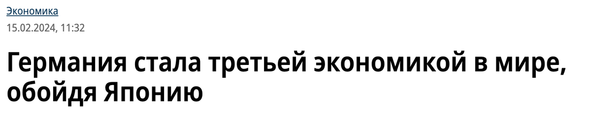 В интервью Такеру Карлсону Путин заявил, что Россия обошла Германию и стала первой экономикой Европы по размеру ВВП. Ну, и еще ранее СМИ говорили, что Россия теперь пятая экономика мира. Хотя до этого на пятом месте была Германия.