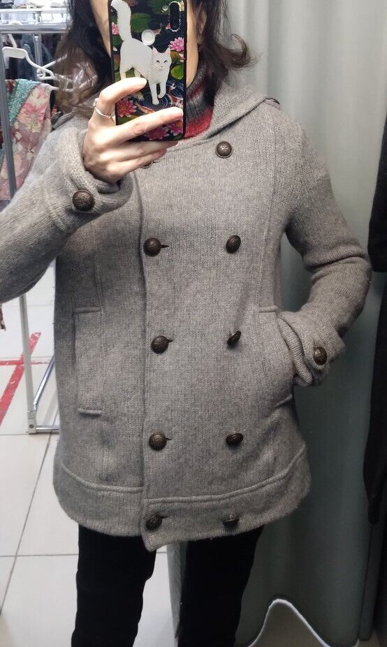 Здравствуйте, сегодня опять сборная солянка из двух секондов. Если не путаю, то 2600 за кг. Демисезонная двубортная куртка с капюшоном. Легкая, можно назвать и теплым жакетом. Трикотаж из хлопка и синтетики. Тяжёлая парка, действительно тяжёлая, плотная ткань, кожаные рукава, двойной воротник и наружный с застежкой, чтобы поднять его, слой утеплителя и капюшон. А карманы на любой вкус)) Куртка-рубашка сшита как рубашка с капюшоном, а ткань очень плотная и толстая, как джинсовая. Смесовая ткань. Необычный принт, если не ошибаюсь, называется тай-дай, как будто вещь скрутили и так окрасили. Демисезонное пальто, ткань не очень толстая, в составе есть 20% шерсти и синтетика. Но все равно можно утеплиться, очень высокий воротник и капюшон. Застегивается на молнию, а клеванты просто для красоты. И сапожки красивого шоколадного цвета. И сами они очень красивые с массой деталей и отделкой из гладкой кожи. Внутри не мех, но что-то явно очень тёплое. Бренд Gabor представляет женскую обувь немецко