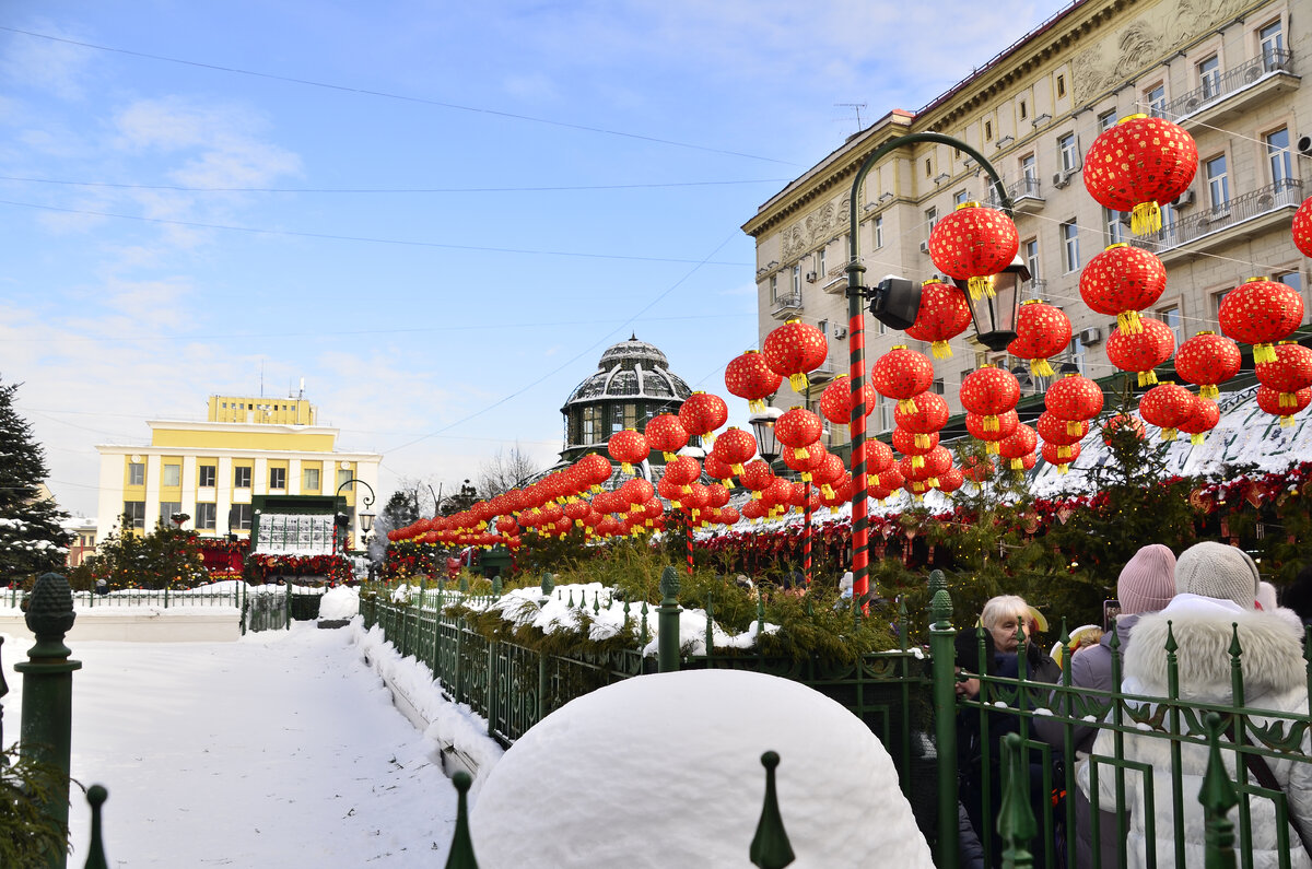 Прогуляемся по фестивальной площадке на Тверском бульваре и посмотрим, как Москву украсили к Китайскому новому году. Такие декорации появились в Москве впервые. Вероятно, что Китайский новый год отмечают в связи с рождением первой в России большой панды. Панды, правда игрушечные, поселились и на Тверской площади. А кроме них масштабные декорации в Китайском стиле: вееры, фонарики, ëлки, украшенные монетками и мандаринами. Здесь можно сфотографироваться с огромными драконами, артистами в кимоно, и посмотреть выступления. И как всегда на фестивале работает ярмарка, где предлагают большое количество сортов китайского чая и другие продукты. В выходные здесь невероятно много посетителей, но нам всё же удалось сделать удачные снимки и получить от путешествия по Китайскому новому году удовольствие 😊 - Максим :з