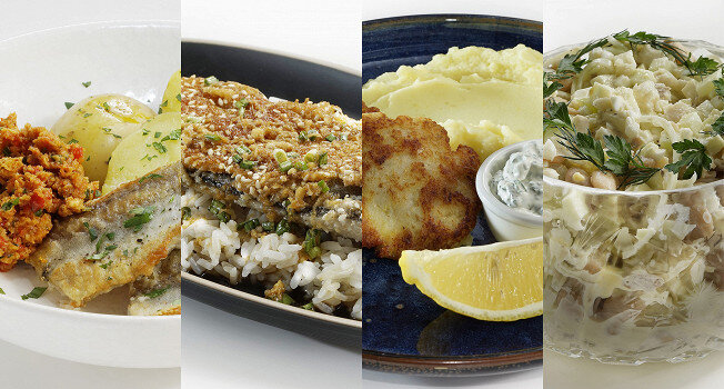 МИНТАЙ В ДУХОВКЕ, ЖАРЕННЫЙ В ХРУСТЯЩЕЙ КОРОЧКЕ, САЛАТ И КОТЛЕТЫ Минтай — главная промысловая рыба российских вод, ежегодно его улов в 6 раз превосходит добычу всех остальных рыб семейства тресковых. Именно этот факт в большей степени, чем вкусовые качества, влияет на ценообразование: в среднем филе минтая стоит раза в два дешевле, чем тресковое. Многие, памятуя советские времена, считают, что минтай более сухой и безвкусный, при разморозке теряет слишком много воды. Это не совсем так: от природы минтай имеет плотное, нежирное, но совсем не сухое, податливое мясо. В каком виде рыба доходит до прилавка, зависит не столько от ее изначальных статей, а от добросовестности производителя: насколько тщательно улов был откалиброван на корабле, как быстро и правильно рыба была заморожена, оттаивала ли она и замораживалась повторно на пути к потребителю, наконец, с какой части туши снято филе. Если же вся цепочка от рыбацкого траулера до прилавка отстроена правильно, то по вкусу качественный минт