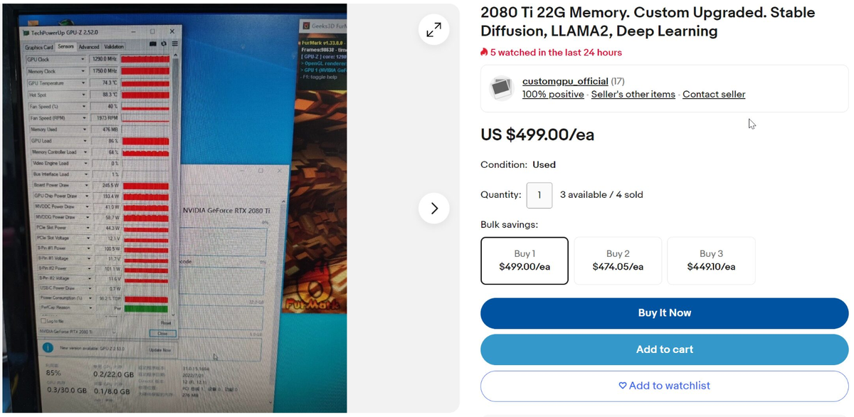 GeForce RTX 2080 Ti с 22 ГБ памяти продается на eBay за 500 долларов