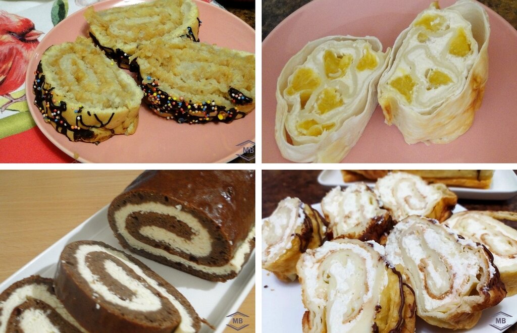 Четыре проверенных рецепта десертов с яблочной и творожной начинкой. Рулет, который выпекается с начинкой Ингредиенты: 650 г яблок, 5 куриных яиц, 80-100 г сахара, 110 г муки, 10 г разрыхлителя, щепотка соли. Процесс приготовления: Вбиваем яйца с сахаром и солью 7-10 минут на высоких оборотах миксера. У очищенных яблок вырезаем сердцевину и натираем на тёрке. Перекладываем яблочную начинку на противень с пергаментом и разравниваем яблоки по противню. К взбитым яйцам добавляем просеянную муку с разрыхлителем. Переливаем тесто ровным слоем поверх яблочного. Лопаткой распределяем массу, закрывая все пустоты и неровности. Запекаем в духовке при 180 градусах 20-30 минут. Накрываем выпечку пергаментом и переворачиваем противень. Снимаем пергамент, на котором выпекался десерт и сворачиваем заготовку в плотный рулет. Оборачиваем рулет пергаментом и оставляем на 30 минут, чтобы рулет схватился. Перекладываем десерт на блюдо, убирая пергамент, и украшаем по вкусу. Рулет из лаваша с начинкой и ма