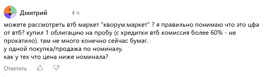 На днях подписчик попросил меня рассмотреть нового зверя от ВТБ, а именно Кворум.Маркет. Выполняю его просьбу и рассказываю о платформе и тех инвестиционных продуктах, которые на ней доступны.