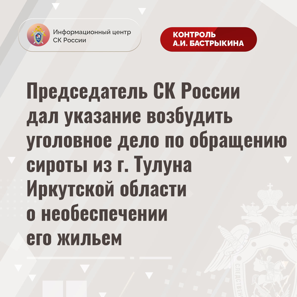 #СледственныйКомитет #СКРоссии #СКР #ИЦСКР #Информационныйцентр #АлександрБастрыкин #ПредседательСКР #КонтрольПредседателяСКР #КомментарийКонтроль #ИркутскаяОбласть