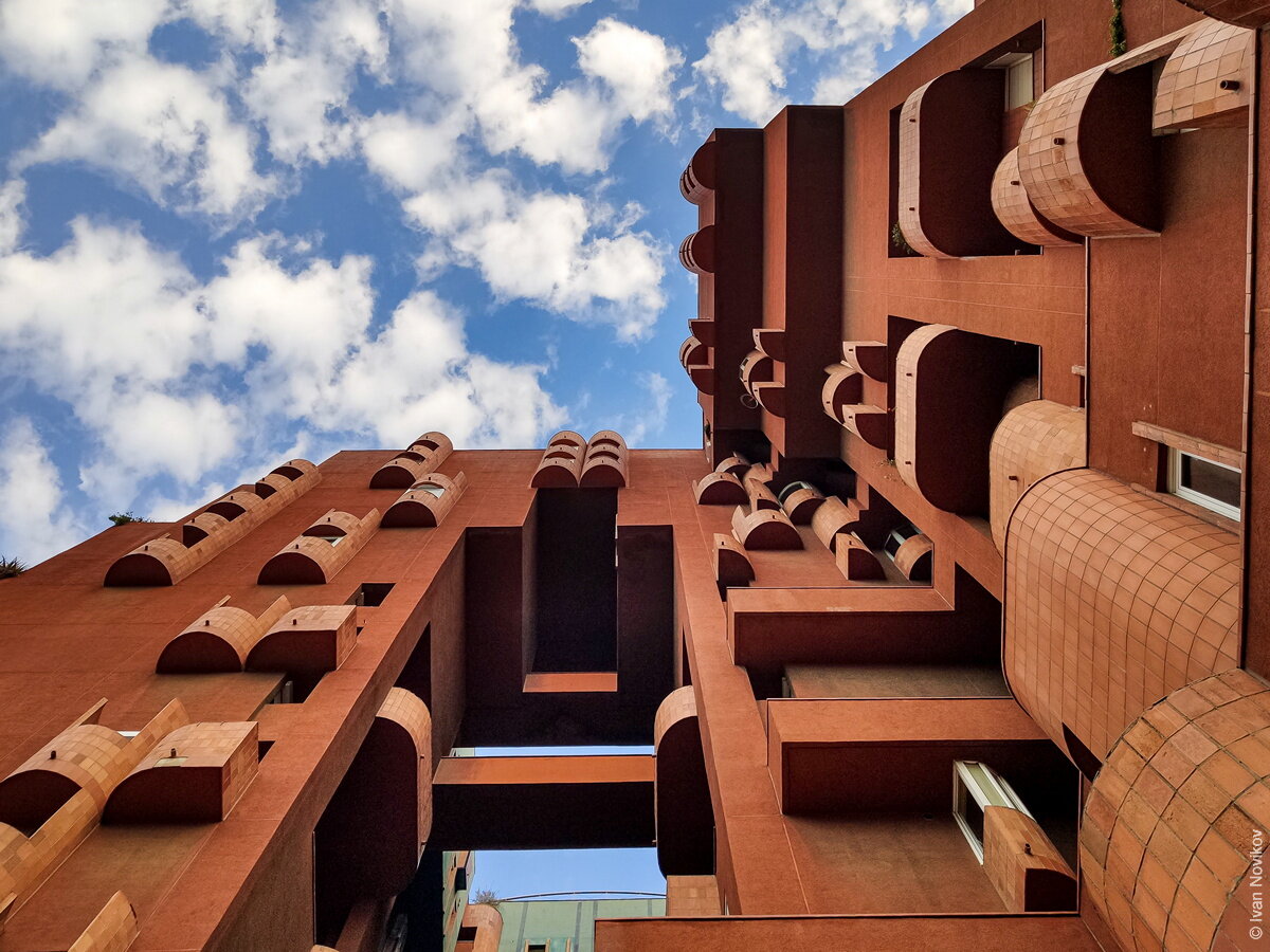 Из центра Барселоны я дошел сюда пешком, хотя путь этот был далеко не близок. В свое время дом меня невероятно поразил по фотографиям и особо не вдаваясь в его историю я пришел любоваться архитектурным шедевром постмодерниста Рикардо Бофилла. Уже в последствии я узнал, что сам Бофилл даже живет и работает неподалеку в своей резиденции, перестроенной из бывшего цементного завода времен еще Первой мировой. Вот здесь подробнее, это здание тоже впечатляет:
