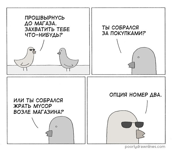 Я сегодня сходил в магазин и убрал одного такого со своего пути ногой, натурально взял и отодвинул в сторону. Пернатый дерзкий парень даже не шелохнулся при моем приближении. В моем детстве все они на всякий случай отлетали подальше, если ты к ним хотя бы на 10 метров приближался, и правильно делали. А сколько ихнего брата пало от метких выстрелов из "воздушки" - не сосчитать. Сейчас же даже автомобиль, что едет прямо на них, этих ребят уже не впечатляет от слова "совсем". Гвозди бы ковать из таких голубей. И я задумался, а почему оно вообще так? Не то чтобы голуби были шибко интеллектуальный народ, по сути то это крысы с перьями, и вряд ли они передают много знаний своим потомкам. Мол не бойся, голубь-сын, идущего на тебя человека, сиди и смотри на него презрительно - таков наш голубиный путь. Звучит сомнительно. Нет, дело не в голубях, дело в нас, людях. Мы стали более жалостливы, мы учим детей не пугать бедных птичек и даже кормим этих паразитов свежими семечками. Естественно, что о