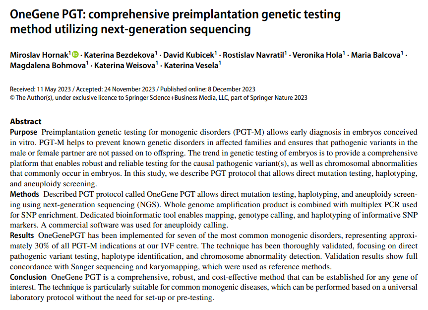 авторы сделали заключение OneGene PGT — это комплексный, надежный и экономически эффективный метод. Методика особенно подходит для распространенных моногенных заболеваний, которую можно проводить на основе универсального лабораторного протокола без необходимости настройки или предварительного тестирования.