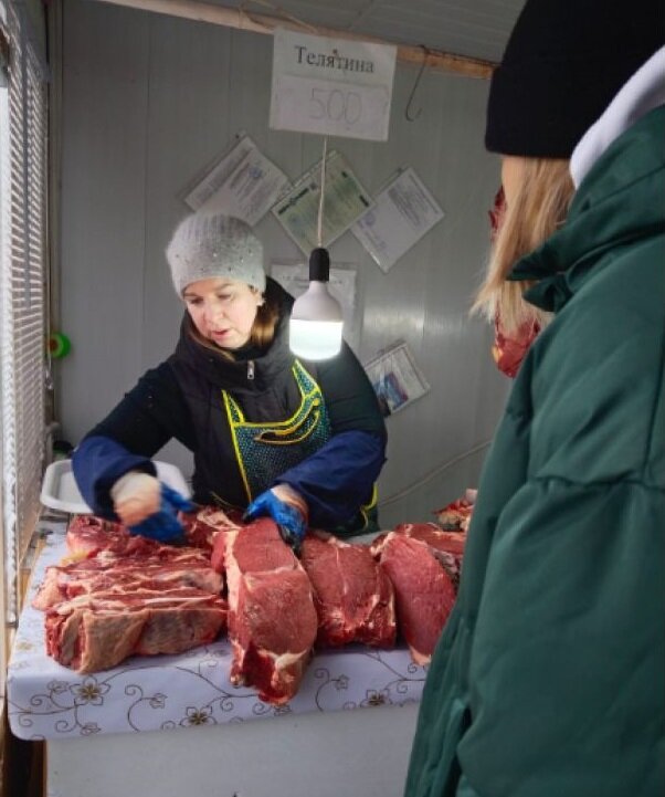 Теперь о мясе. Говядина стала дороже. Телятину на оптовом рынке продают от 430 до 500 рублей за килограмм. Сам в шоке от цен. Но продавцы заверили нас, что оптовые цены на закупку выросли. Однако, если поискать на рынке, то можно найти говядину по 400 рублей за килограмм. Я взял грудинку. Также я видел на оптовом рынке говядину по 360 рублей за килограмм, но куски меня не впечатлили.