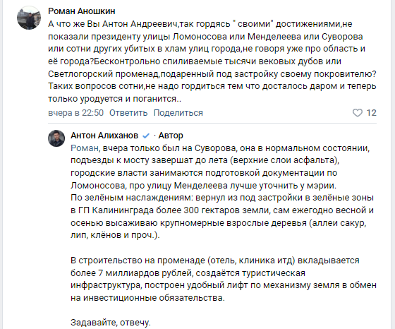 Инвестор, реализующий проект застройки променада Светлогорска, вкладывает в строительство более 7 миллиардов рублей. Об этом сообщил губернатор Калининградской области Антон Алиханов, отвечая на вопросы пользователей на своей странице «ВКонтакте». «В строительство на променаде (отель, клиника ит.д.) вкладывается более 7 миллиардов рублей, создается туристическая инфраструктура, построен удобный лифт по механизму земля в обмен на инвестиционные обязательства», — написал губернатор. Напомним, компания «Раушен Хотел Ресорт» возводит на променаде Светлогорска комплекс апарт-отелей и коммерческой недвижимости, а компания «Ланцет» — медицинский центр. Многие здания уже в высокой степени готовности. Не достроенные пока апартаменты в них можно купить по 600 тысяч рублей за один квадратный метр. Застройщики получили землю без торгов бесплатно, поскольку проект в апреле 2019 года был признан масштабным и одобрен советом по улучшению инвестиционного климата при губернаторе Калининградской области