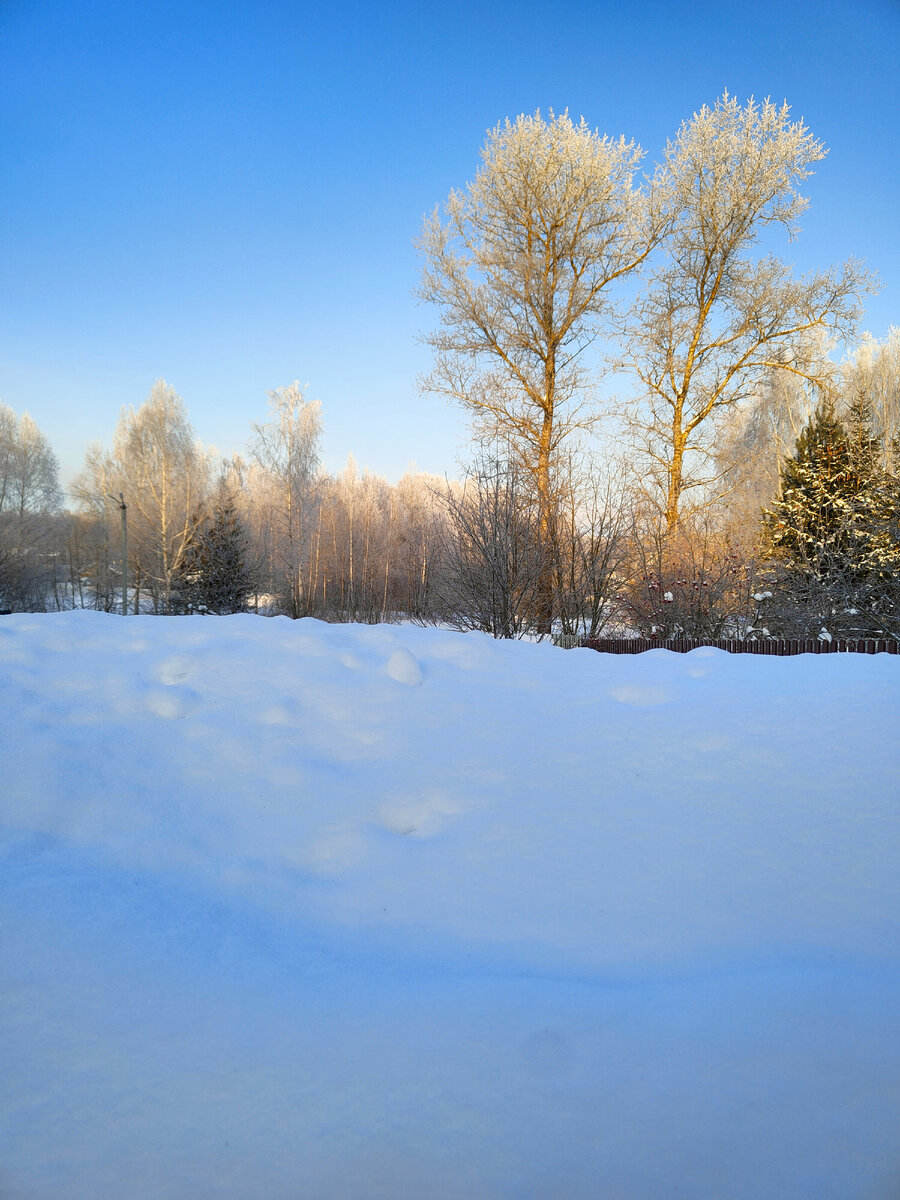 Мороз и солнце.Сугробы по 3 метра высотой.