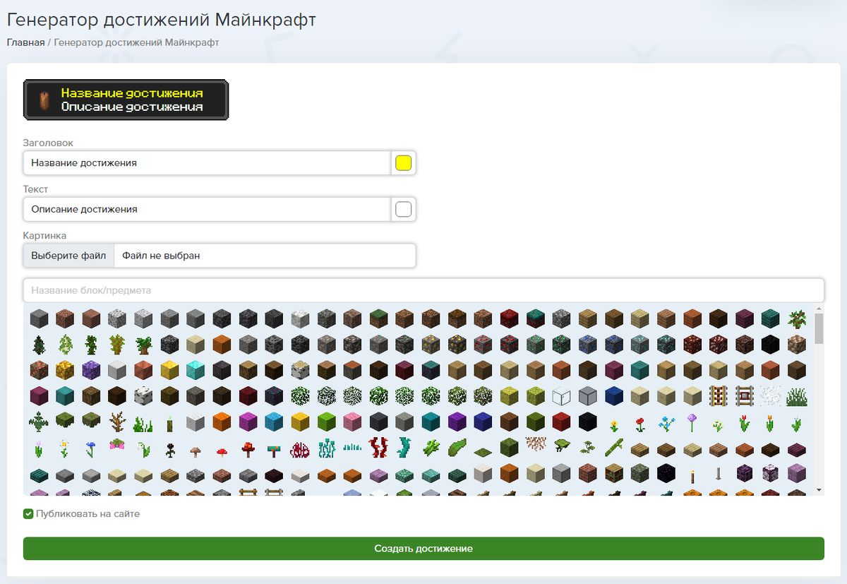 Игра в Minecraft всегда была о приключениях, творчестве и достижениях. Но что если вы могли бы добавить к этим достижениям что-то особенное? Что если ваша каждая победа, каждое новое строение, могли бы быть увековечены в виде красочного и уникального достижения? Теперь это возможно благодаря сервису "Генерация достижений Minecraft" на сайте Mocraft.ru! Ваш индивидуальный отпечаток в Мире Minecraft Сервис "Генерация достижений Minecraft" на Mocraft.ru предлагает вам создать свои собственные достижения в стиле Minecraft. Это не только отличный способ запечатлеть ваши игровые успехи, но и добавить уникальность вашему опыту игры. Как это работает? Процесс создания достижений на Mocraft.ru прост и интуитивно понятен. Просто загрузите изображение вашего персонажа или выберите один из предоставленных образцов, затем добавьте текстовые данные, отражающие ваше достижение. Вы можете указать ваш никнейм, дату, название достижения и что угодно еще, что захотите включить. После этого сервис сгенери
