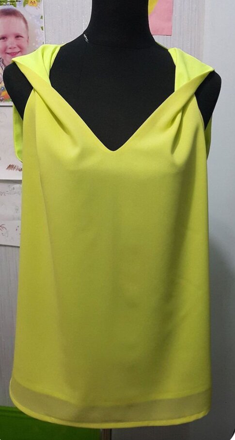 Сегодня моделируем по фото блузку без рукава с перевернутыми полочками у плеча. Конструкция модели довольно простая, а выглядит очень необычно и затейно.