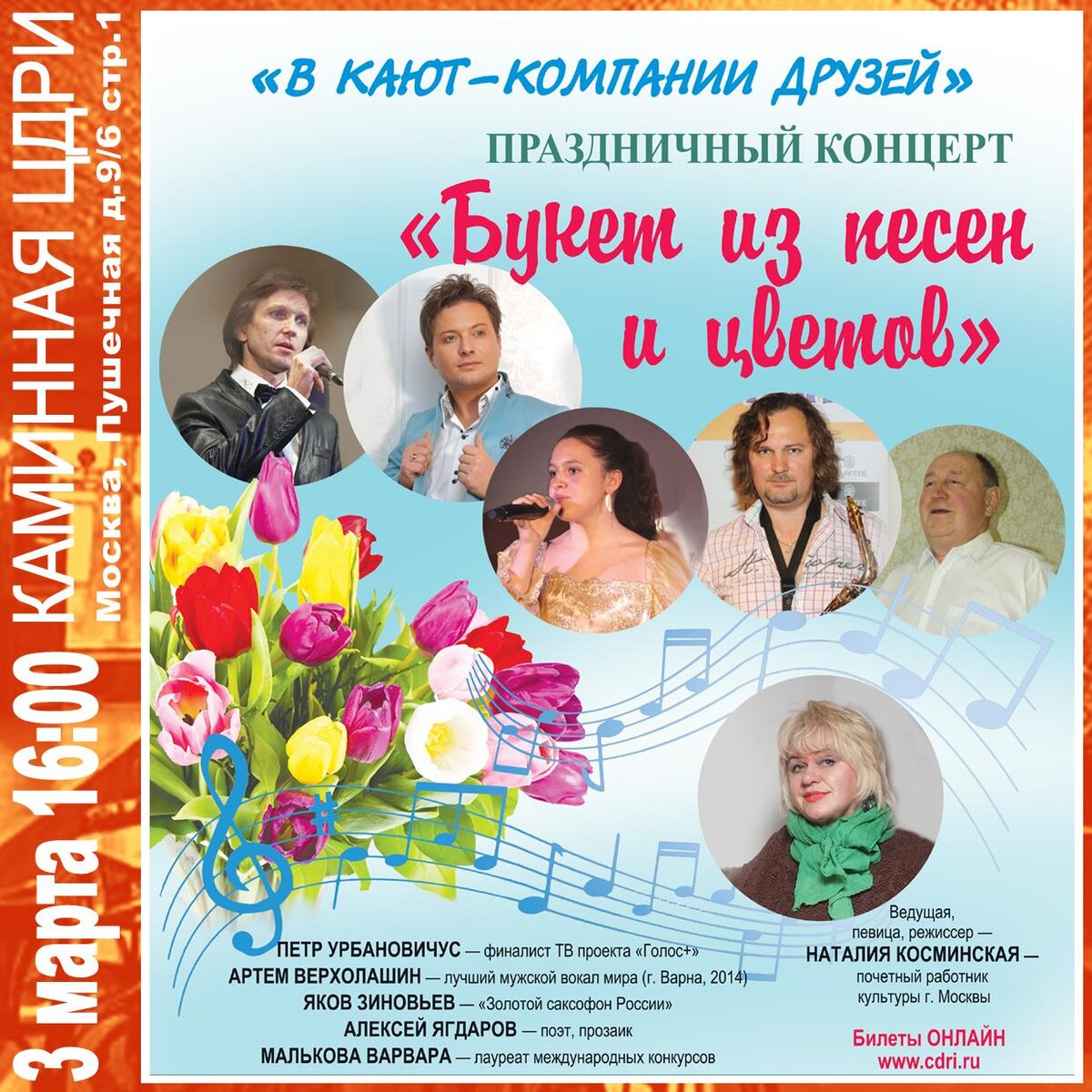 3 марта, воскресенье 16:00 — Каминная ЦДРИ Праздничный концерт «Букет из песен и цветов»