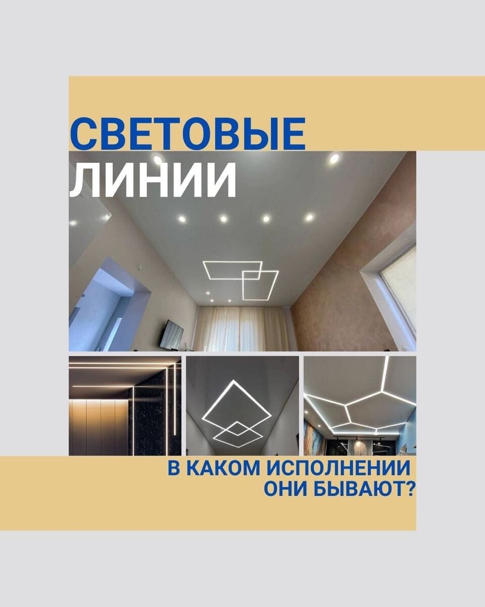 - Световые линии на потолке и стенах