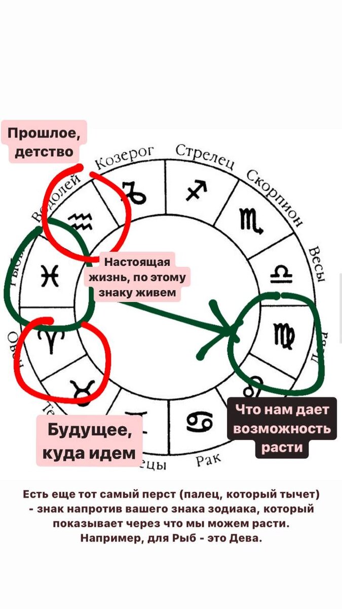 И вот недавно стали изучать классную методику "Перст судьбы". Ее суть в том, чтобы рассказать про наше прошлое (детство, про родителей, что нам дает энергию для жизни - все это формирует нашу опору в настоящей жизни, это показывает предыдущий знак зодиака; например, если вы Рыбы, то перед ними идет Водолей - по этому знаку зодиака проходило ваше детство), про настоящее (наш знак зодиака Солнца, по нему живем), про будущее (то, к чему мы стремимся, каких качеств нам не хватает и мы их начинаем нарабатывать - знак зодиака, следующий за вашим знаком; если вы Рыбы, то следующий знак - Овен).