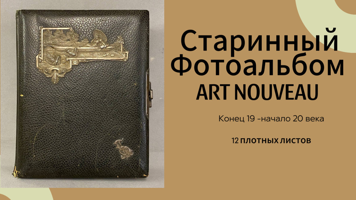 Что мне нравится в формате «статья», что здесь можно размещать фотографии как в дайджесте подряд, а не как везде в социальных сетях, листая друг за другом. Потому что, некоторые предметы интересно рассматривать вдумчиво, не прерывая взгляда, и в статье их поэтому для меня удобнее размещать. И сегодня в формате дайджеста хочу показать роскошный, большой фотоальбом с потрясающей металлической накладкой в стиле модерн. Сюжет накладки модерно́вее некуда: нежная дама томиться от летней жары под зонтиком в восточном стиле на берегу пруда с кувшинками и лебедями. Хотела, чтобы вы увидели на моих фотографиях как тонко проработаны детали этой композиции. В альбоме 12 плотных листов, под три формата фотографии, размером 19,5/12,5 см, 15/10 см и 9/5,5 см. Все незаполнены, значит, кто-то может сделать из этого альбома реликвию своей семьи. К сожалению, в таких вещах все равно есть какие то дефекты от времени, но тут они единичны - это незначительные надрывы в прорезях для фото. Замок альбо