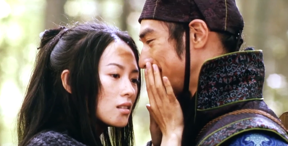 Представлять метущуюся девушку выпало актрисе Чжан Цзыи. Кто-нибудь может усомниться в том, что она одним взглядом покорит кого угодно? Конечно, нет. И "Мемуары Гейши" тому подтверждение. Да, Мемуары вышли в прокат на год позже "Дома". Но лично я посмотрел их гораздо раньше героя этой статьи. И несколько раз. А до Летающих кинжалов добрался лишь сейчас. Вообще, это странно. Но не лежала моя душа к Дому. Никак не лежала. Открывал вкладку с фильмом и тут же закрывал обратно. А глупый мозг не догадался подтолкнуть хозяина на просмотр. Наверное, загвоздка в названии. Мнилось, будто речь пойдёт про Мастеров Очень Боевых Искусств, собравшихся в каком-нибудь помещении. Знаете, этакий Мортал Комбат, только в китайском стиле. Ну что могу сказать в своё оправдание? Ничего. Радует, что таки включил. Кстати, кроме любви здесь имеются танцы, эффектные драки и, собственно, летающие кинжалы, поражающие воображение своим полётом. Как виртуозно персонажи их использовали! На это можно смотреть вечно!