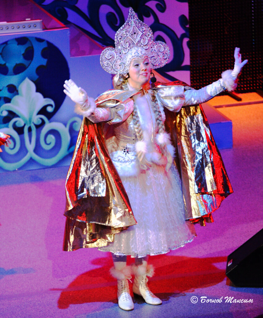 Из вертолета выпрыгнул высокий мужчина в красном тулупе с длинной белой бородой, в красной шапке, с посохом в руке, развернувшись подал руку спускающейся девушке, в голубой шубке, шапочке и белых сапожках… Лопасти вертолета провиснув, застыли.