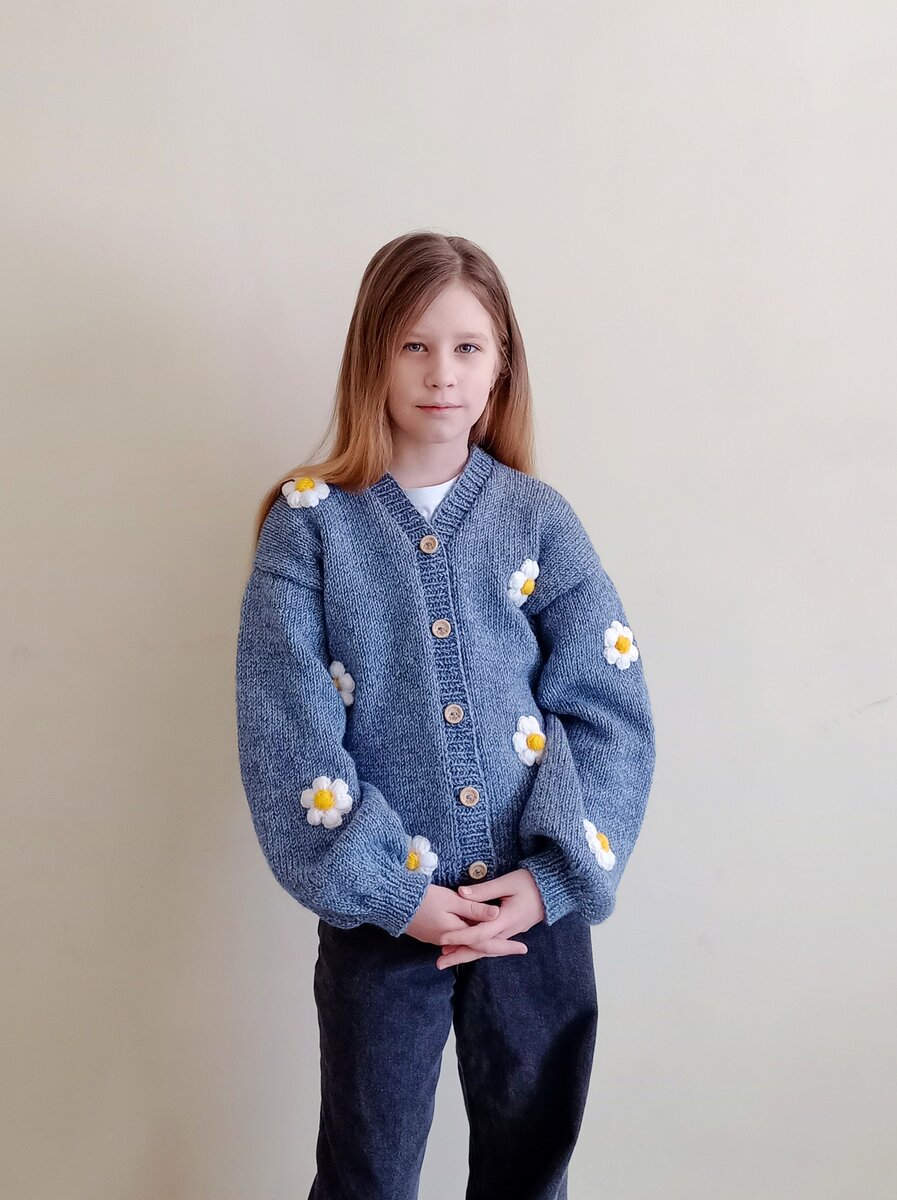 Здравствуйте. Вот и я не удержалась, поддалась "цветочной волне". Связана для дочки кардиган которым пестрит весь интернет.