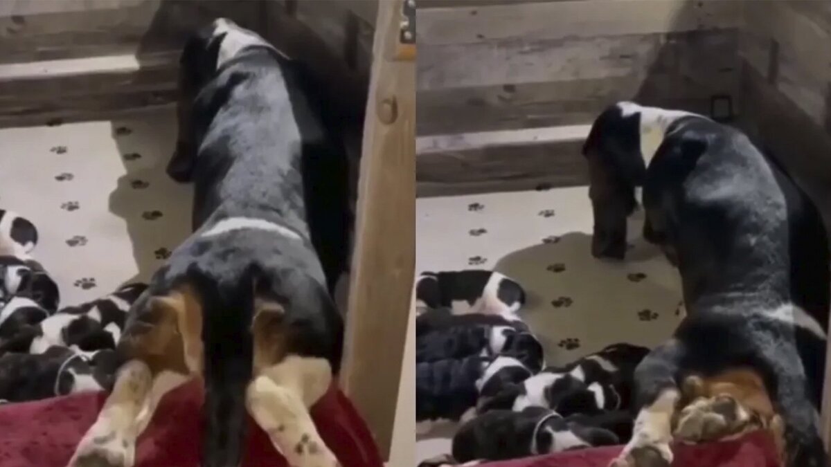 На видео сняли, как ведет себя мама-собака во время «тихого часа»