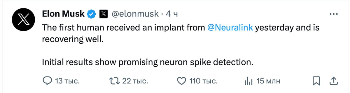 Neuralink Илона Маска вживила первый нейрочип в мозг человека