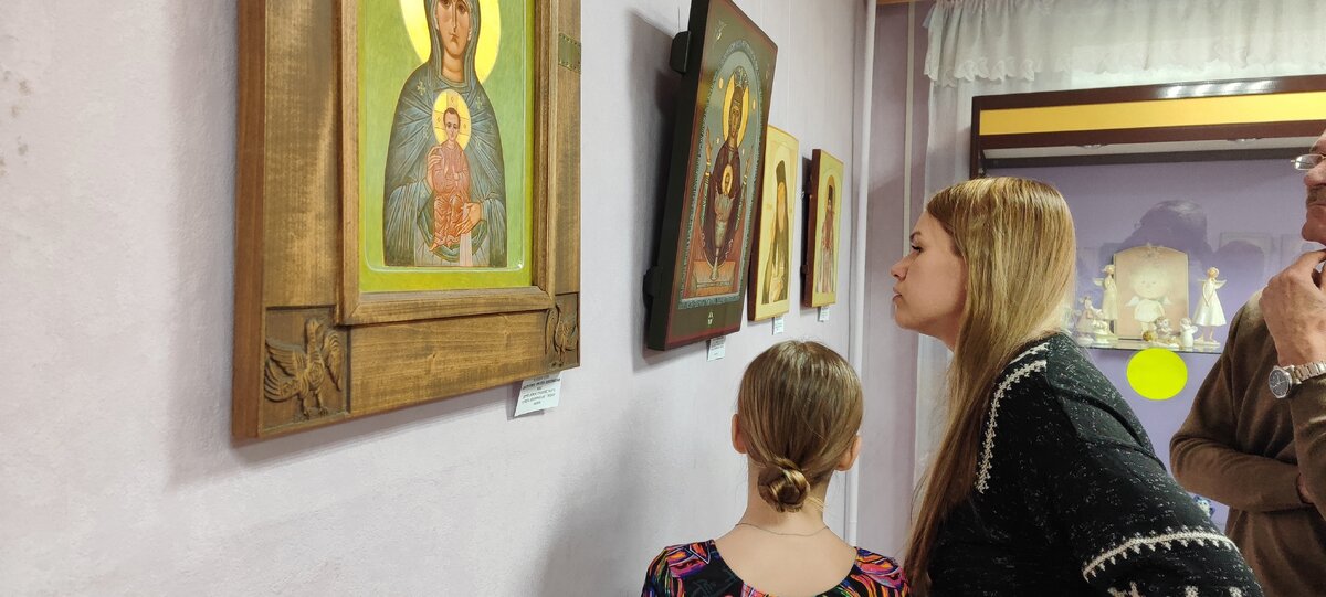 Каждое открытие выставки - это отдельный аккорд эмоций и этот аккорд не повторяется. Что чувствует иконописец, когда видит экспозицию икон и совсем недавно написанную свою среди них? "Ух ты! Ничего себе. Всё такое необычное" - именно такие были у меня мысли когда попала на выставку "Духовные ценности земли Тамбовской". Замираешь, еле дышишь и наслаждаешься тишиной повисшей в воздухе. 1 февраля 2024 года состоялось открытие выставки в Краеведческом музее города Рассказово. Иконы представленные на экспозиции выполнены в манере, присущей Тамбовским иконописцам, где преобладают холодные тона, не используются открытые жёлтые и синие краски, а многообразие цвета получается путём грамотного смешения других пигментов среди которых много земельных (охры, разные виды глин) и/или размолы полудрагоценных камней, ярким представителем, которых является малахит. При этом иконы кажутся абсолютно разными и по цветовой гамме и по манере исполнения. Не только в красках раскрывается название выставки, н