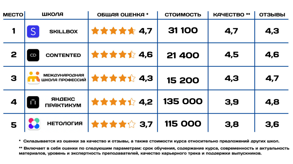 Мы постоянно работаем над улучшением наших обзоров и рейтингов курсов, чтобы они делали процесс выбора простым и понятным. Если вам не хватило какой-то информации, или у вас есть пожелания, как улучшить наши статьи, просим вас написать в комментариях что именно нам стоит изменить или дополнить. Мы чутко реагируем на обратную связь и обязательно добавим недостающую информацию!