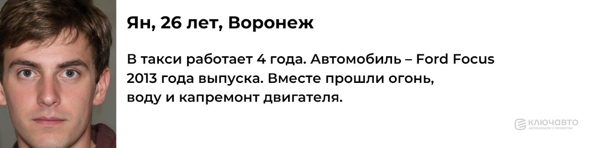 Для многих людей автомобиль – не просто средство передвижения, но и инструмент для заработка. КЛЮЧАВТО | Автомобили с пробегом опросили клиентов и читателей канала, работающих в такси, и попросили рассказать о своих четырехколесных напарниках. Статья будет полезна тем, кто планирует заняться извозом или подбирает личный автомобиль для частых поездок по городу. Такси для меня – основной источник заработка. Когда начинал работать, решил взять что-то дешевенькое с пробегом, а не загонять свой Опель, подаренный родителями. Купил Ford Focus 2013 года. Почему? Сложилось несколько факторов: – Знакомые ребята периодически кидали объявления, и нашелся Форд в очень хорошем состоянии, который не требовал вложений сразу после покупки; – В известном черно-желтом агрегаторе такси (в основном с ним работаю) Ford Focus 2013 подходит для использования на популярных тарифах, включая «Комфорт». Спустя полтора года после покупки пришлось сделать капремонт движка. Знакомые умельцы перебрали все за смешную