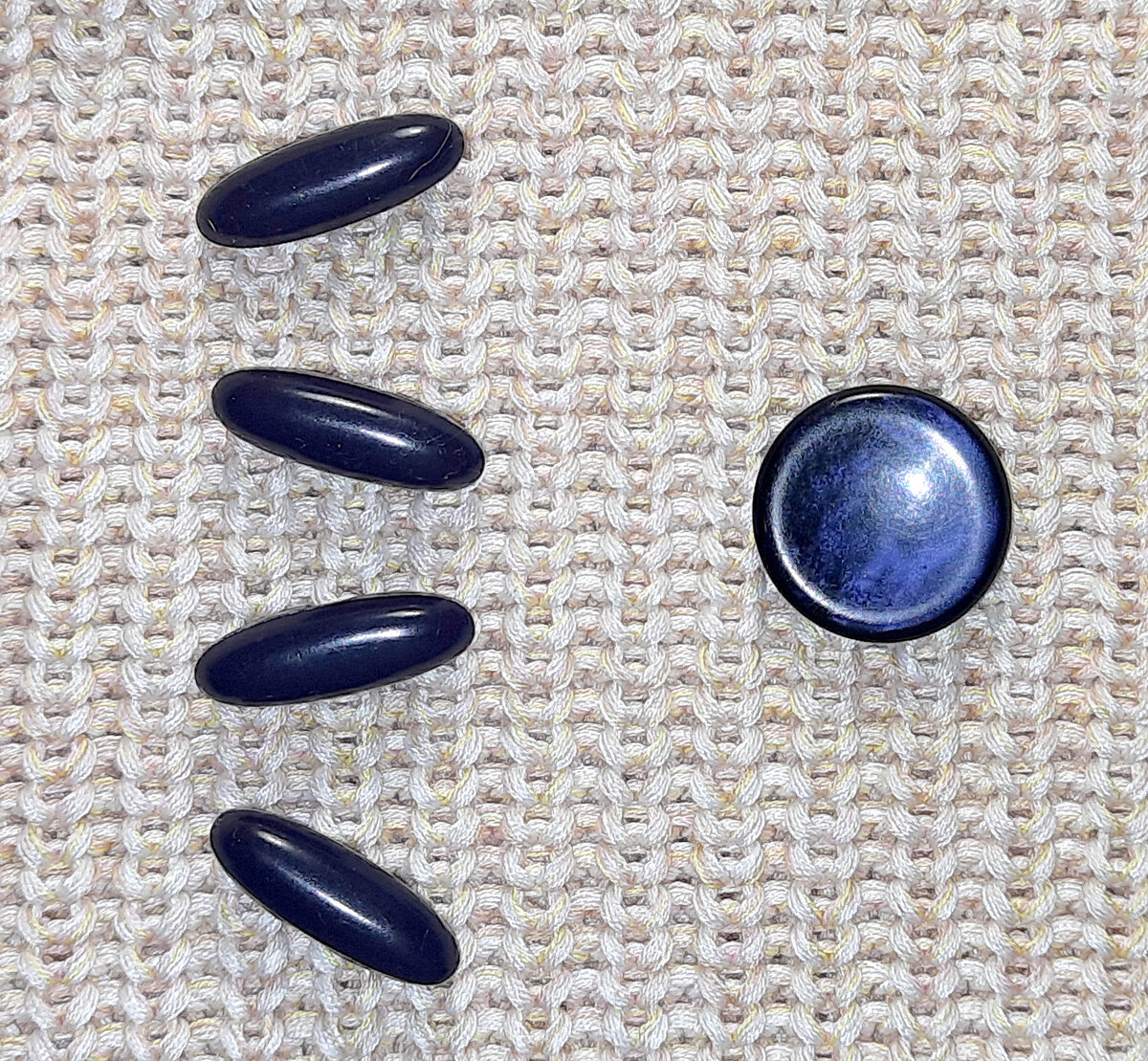 Отличия пуговицы круглой от пуговицы другой формы в том, что круглая пуговица центрально-симметрична. А остальные пуговицы, если и симметричны, то уже вокруг оси или совсем асимметричны, например фигурки людей, животных, машинки и пр). Поэтому, пришивая пуговицу за одну точку, мы получим вращение вокруг этой точки. В случае однотонной или симметричной круглой пуговицы, поворот будет незаметен. А в случае удлиненной пуговицы- может оказаться совершенно хаотичным. Если в пальто и других плотных тканях можно пуговицу как-то постараться укрепить пуговицу, чтобы зафиксировать ее вращение, то на трикотаже это НЕВОЗМОЖНО. Поэтому вытянутые пуговицы, хотя и будут лучше держать ваше трикотажное изделие (кофту или воротник на свитере), но крутятся и располагаются не параллельно. Если для вас это не критично, то длинные пуговицы отлично подходят для использования. А если они сбивают вашу симметрию, то откажитесь в пользу круглых. Кстати, не забывайте снимать катышки с вашего трикотажа