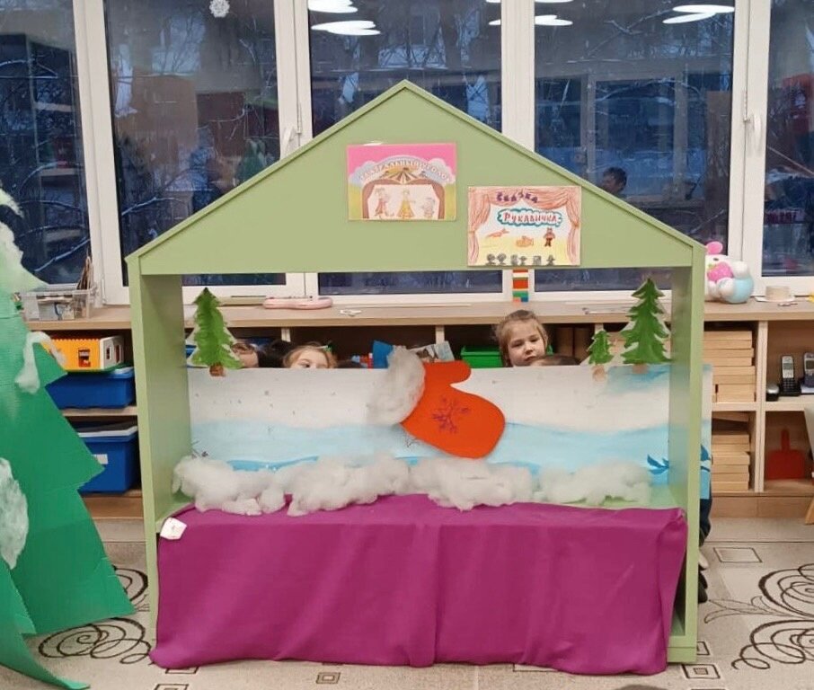 «Ребята с большим удовольствием принимают участие в инсценировках своих любимых сказок. И чтобы дети снова смогли почувствовать себя настоящими артистами, мы представили сказку «Рукавичка» в собственной интерпретации. Распределили роли, подготовили декорации и пригласили детей из средней группы на наше представление. Гости приобрели билеты, пришли в театр и с нетерпением ждали начала спектакля. Оригинальная сказка рассказывает о гостеприимстве и дружелюбии, но в нашей версии она также учит доброте, вежливости и взаимовыручке. Даже самые маленькие зрители могут понять героев истории. Персонажи жалеют друг друга, принимают в своё жилище всех, кто замёрз, даже за счёт своего комфорта.