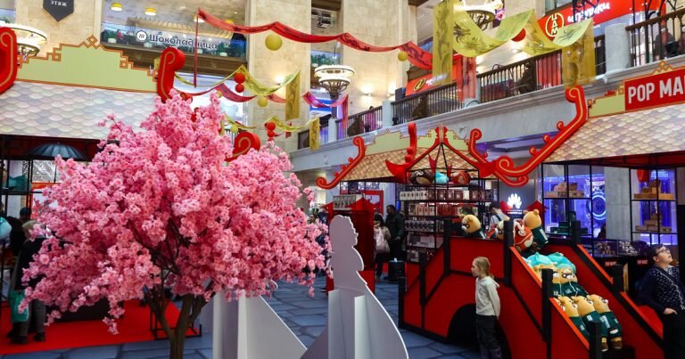 Уже совсем скоро в Москве начнут праздновать китайский Новый год — 9 февраля откроется масштабный фестиваль, который, как говорят власти, проводится впервые. (Хотя серию праздничных мероприятий на ВДНХ, приуроченных к выставке-реконструкции «Терракотовая армия. Бессмертные воины Китая» в прошлом году, можно считать генеральной репетицией.) К событию спешат украсить улицы, которые еще не освободили от предыдущих новогодних украшений. Видимо, решено, что в Москве должен быть постоянный праздник, бесконечный карнавал. Вчера появилось видео, как в Камергерском переулке монтируют китайские фонарики, а сегодня уже можно посмотреть на результат. Как видно по фотографиям, фонарики повесили прямо на старые пучки гирлянд, которые в свое время вызвали много критики в соцсетях. В Камергерском переулке еще запланировано появление арок с фантастическими животными и красно-золотых шале, в которых будет идти выставка китайской еды (видимо, с дегустацией). Впервые отметить китайский Новый год решили в