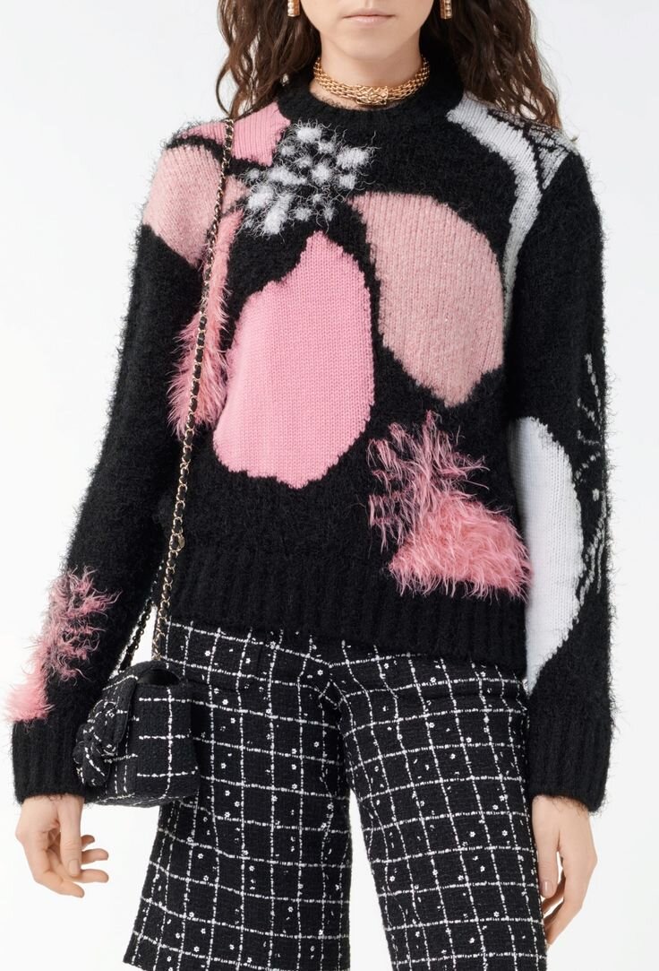 Мое внимание привлекли два интересных джемпера от популярного бренда Шанель. Я нарисовала схемы интерсии. Интересное сочетание цветов и использование разной пряжи для элементов интерсии, а также вышивка делают эти джемпера очень нарядными и женственными. Использование мохеровых нитей или пряжи“травки” создают интересный эффект. Фото взяты с pinterest.ru Спасибо, что дочитали статью до конца. Всем удачи, ровных петелек и творческих успехов! Не забывайте подписаться на канал.