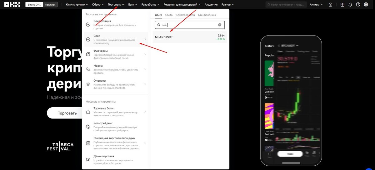 ИНСТРУКЦИЯ: Для работы с NEAR Wallet необходимо иметь: ▪️ Биржевой аккаунт OKX/Binance - прямое пополнение ▪️ Любой другой биржевой аккаунт ByBit/BingX - пополнение через Metamask (выходит куда дешевле и быстрее, нежели создание другого биржевого аккаунта, пополнение его и конвертации в токены NEAR) ▪️ 5 долларов стейблкоина USDT Способ 1. Прямое пополнение Имея в наличии биржевой аккаунт OKX, или Binance (не рекомендуем использовать эту биржу проживая в странах бывшего СНГ), или регистрируясь по 👉 ссылке 👈 на OKX Так же нам необходим сам кошелек NEAR Wallet, зарегистрировать 👉 здесь 👈 Выполнение: 1.Пополняем свой биржевой аккаунт на 5 USDT 2.Открываем "спотовую торговлю", ищем там NEAR/USDT 3.Покупаем по рынку NEAR на чуть больше 5 $ 4.Идем во вкладку "основной аккаунт", там пишем в поиске NEAR, нажимаем "вывести" 5.В адресе доменного имени вводим свой адрес кошелька (ваш никнейм в ТГ с припиской .tg), который виден в самом кошельке сверху 6.Выбираем сеть вывода NEAR, указываем ма