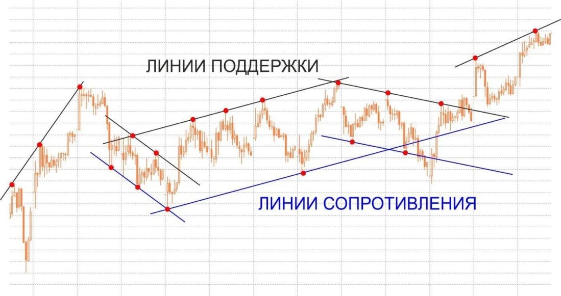 Уровни поддержки и сопротивления — это ключевые понятия в техническом анализе, которые помогают трейдерам определять потенциальные точки разворота на рынке. Уровни поддержки Уровень поддержки — это ценовой уровень, на котором покупательская активность достаточно сильна, чтобы остановить дальнейшее падение цены. То есть, когда цена актива приближается к определенному нижнему уровню, спрос на него увеличивается, что препятствует дальнейшему падению цены. Уровни сопротивления Уровень сопротивления — это, наоборот, ценовой уровень, на котором продажи достаточно сильны, чтобы предотвратить дальнейший рост цены. Это означает, что при приближении цены к определенному верхнему уровню, продавцов становится больше, и это останавливает дальнейшее увеличение цены. Как находить эти уровни? 1. Исторические данные: Уровни поддержки и сопротивления часто определяются на основе предыдущих максимумов и минимумов цены. Эти уровни можно найти, анализируя исторические графики цен и отмечая уровни, где цены