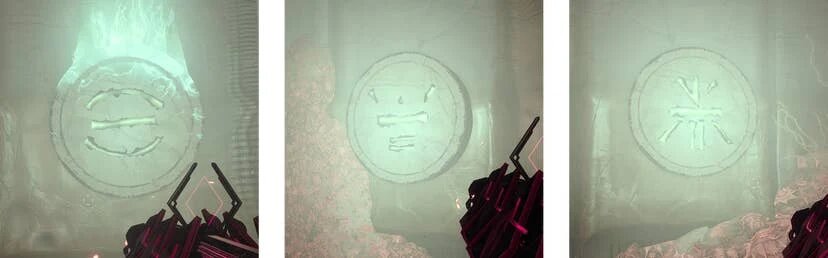 Вы окажетесь в круглой комнате с различными символами Улья вокруг вас. Цель теста – выстрелить в правильный символ, чтобы активировать серию порталов и пройти через них. Проход через неправильный портал убьет вас и перезапустит тест. Посмотрите за дверной проем, в который вы вошли, и обратите внимание на тип и расположение символа. Найдите портал, на котором есть такой же символ в том же месте, и стреляйте в символ, используя элемент, соответствующий его цвету. Портал откроется, пройдете через него и повторите процесс.