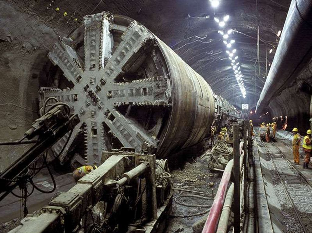 Под огромным ангаром за короткий срок была вырыта шахта на глубину 50 метров, где раскопали-расширили зал неимоверных размеров и по грузовому лифту опустили по частям землеройный агрегат.