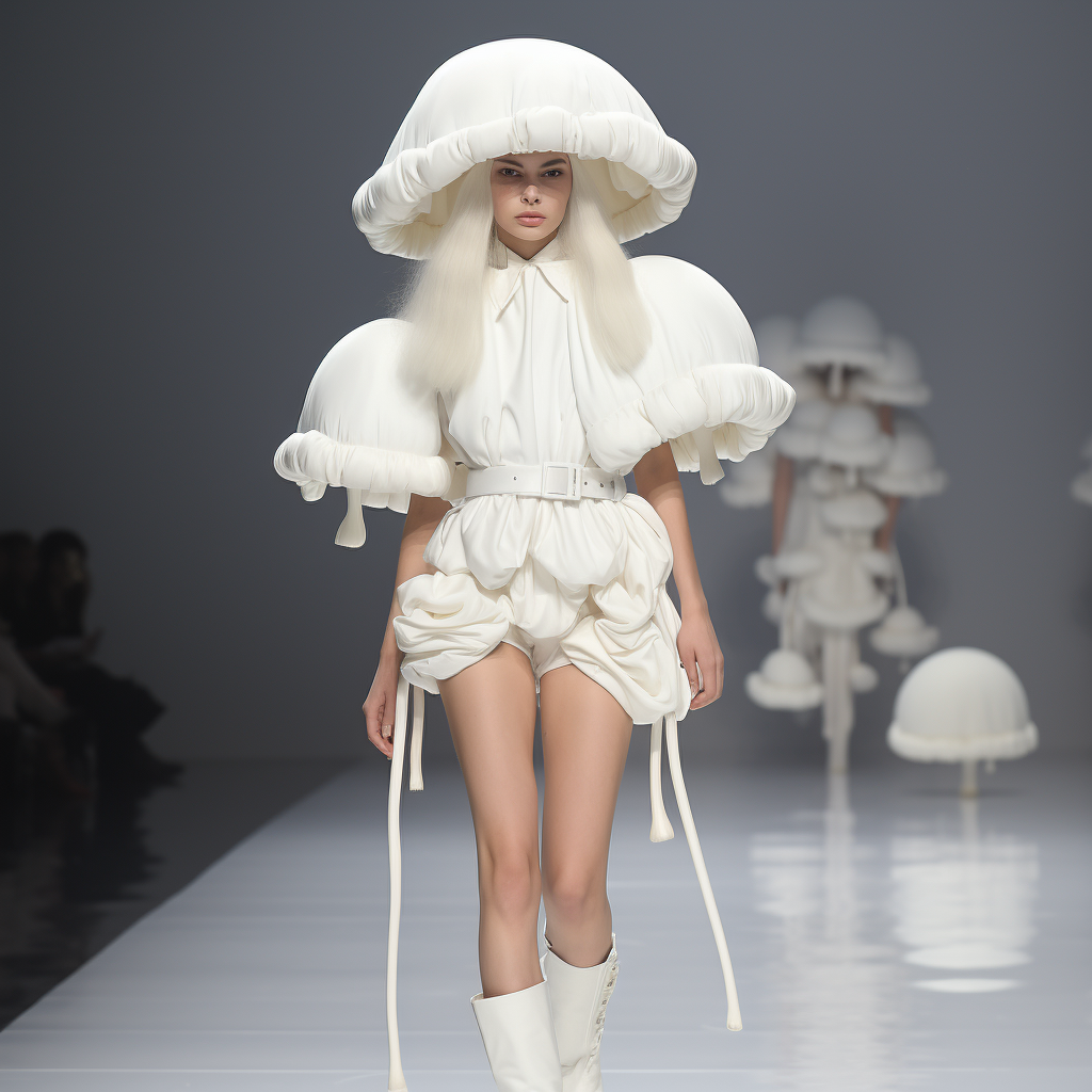 Уже сегодня существуют инновационные разработки из мира моды на основе грибов. Мы уже писали про отдельные элементы одежды, созданные из мицелия, однако пока что серийные производства таких вещей так и не были запущены. Мы решили пофантазировать на эту тему и попросить нейросеть Midjourney показать, как могла бы выглядеть «грибная» мода в будущем Как вам? Хотели бы видеть такие вещи в своём гардеробе?