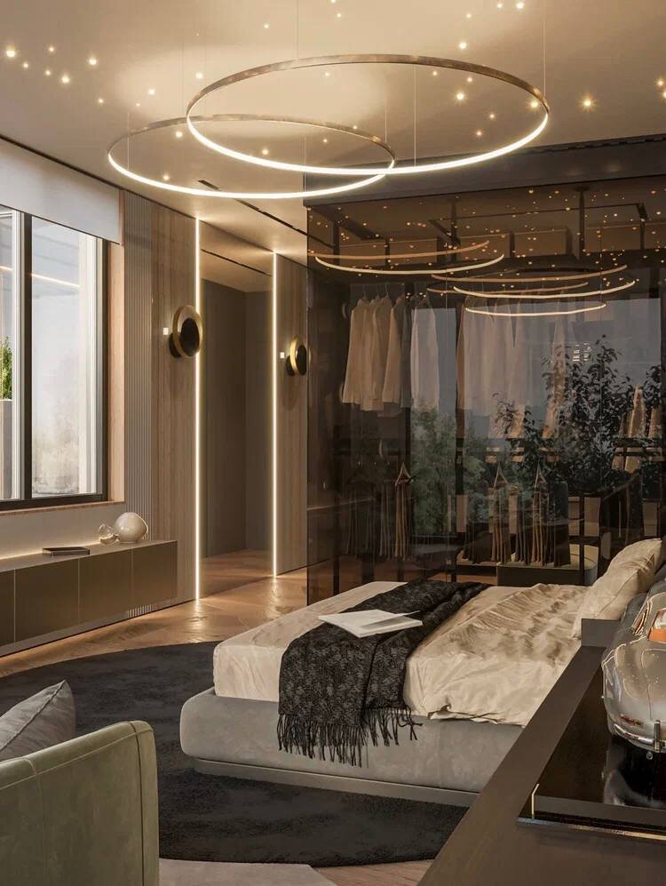 Массивные шкафы и неуклюжие комоды давно стали пережитком прошлого. Даже в небольшой квартире можно искусно расположить гардеробную, которая идеально впишется в пространство жилища и будет многофункциональной. Идеальным расположением гардеробной станет место, близкое к мастер спальне. Основные зоны внутри гардеробной: ◾️Верхняя — на высоте не меньше 190 см, заменяет антресоли, предназначена для сезонных вещей. ◾️Центральная — состоит из штанг для верхней одежды, полок для белья, вешалок для прочих предметов гардероба. ◾️Нижняя — отведена под обувь и состоит из специализированных ящиков. ◾️Для головных уборов — разделена на ячейки размером от 25×18 см и находится над центральной частью. ✨На фото неподражаемая гардеробная в моем проекте #Кристина_Дмитрова_Репино Особенность этой гардеробной в том, что от спальни её отделяет тонированное стекло. За счёт чего, гардеробная не крадет габариты спальни и делает пространство комнаты космическим.